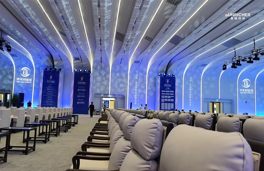 系2024年首次啟用,由知名建筑師馬巖松領銜的MAD建筑事務所精心打造,總建筑面積達6.4萬平方米,建筑高度12米,共三層,包括主會場和宴會廳在內的16個主要空間,整體可容納5600人。用獨特三葉草造型,融入海淀三山五園。晟瑞 SUNRICHER 攜手MAD,用智能照明點亮“中國的硅谷,世界的中關村”!