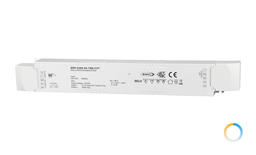 100W恒壓24V DALI-2 DT8 長條形2通道調光調色電源