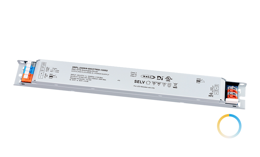 LED調(diào)光電源,最大輸出功率50W,輸入電壓120-277V,內(nèi)置DALI-2接口,DALI DT8設(shè)備