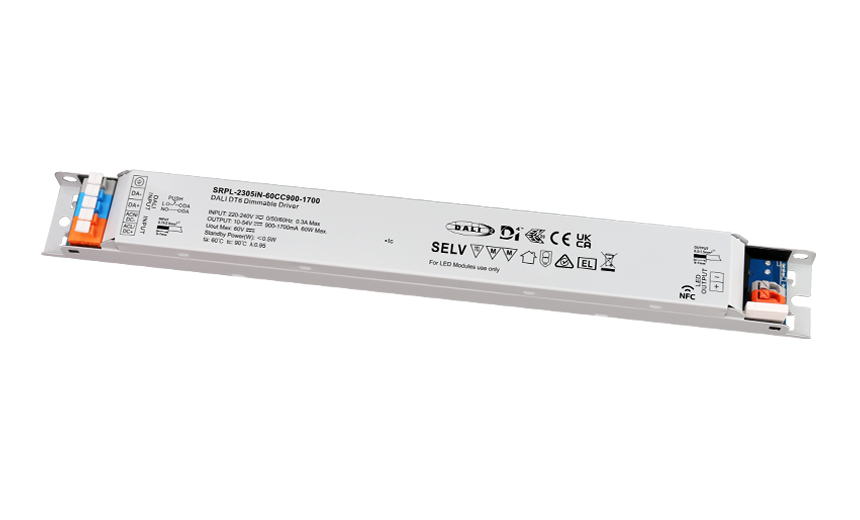 | DALI | 1通道 | 10-54V | 900-1700mA via NFC setting; 最低設置電流檔位間隔低至 0.1mA | 220-240VAC | 最大60W | >0.95 | 284*30*21 mm(長*寬*高) |