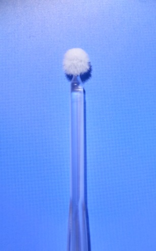 本公司生產(chǎn)的DNA提取球形拭子是一種特別適用于96孔板微量提取的提取工具,采用尼龍纖維技術(shù)制作而成,前端涂有以垂直方式固定的尼龍短纖維,使得整個(gè)采集拭子采集區(qū)域內(nèi)部無吸收孔,DNA細(xì)胞不會(huì)分散滯留纖維之中,有利于更快更高效的洗脫。拭子頭部小,使用時(shí)將拭子頭插入96孔板小孔中,稍用力即可折斷,將拭子頭整體滯留于小孔中進(jìn)行后續(xù)操作,不需人工剪碎,操作簡(jiǎn)單,耗時(shí)短,可以大大提高工作效率,特別是避免樣品間的交叉污染的問題,使檢測(cè)準(zhǔn)確率高。拭子懸空放置于管體內(nèi),防止檢材因包裝粘附而受到污染。管底配有特殊濾膜,保證管內(nèi)外空氣通透性,防止檢材霉變,同時(shí)濾去外部空氣中可能影響檢材質(zhì)量的小顆粒雜質(zhì),便于樣品長期儲(chǔ)存。